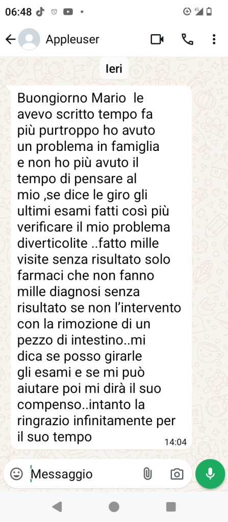 Al terzo medio- prossimale sono riconoscibili numerose formazioni diverticolari; le pareti del viscere appare discretamente ispessite con pliche ravvicinate che determinano riduzione di calibro del lume colico (stenosi da complicanza cronica da diverticolite).