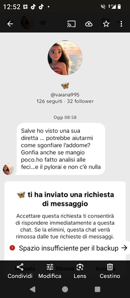 25b richieste. Meteorismo. Gas. Addome.