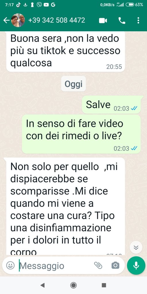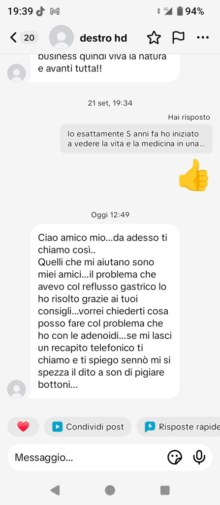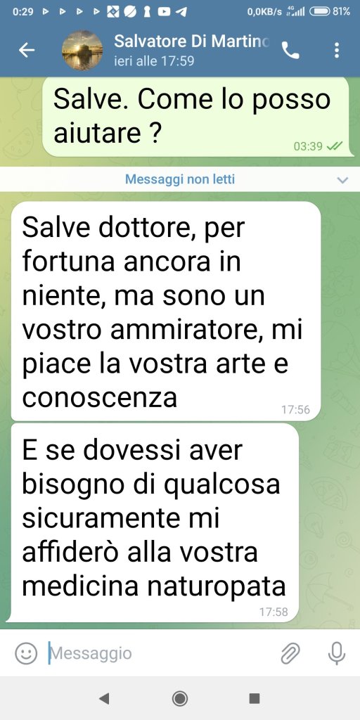 A ME MI trovate su waths-app a 3533-131-427 oppure su telegram https://t.me/naturopatarusso. IN UN MESSAGGIO mi dice TUTTI vostri problemi, io