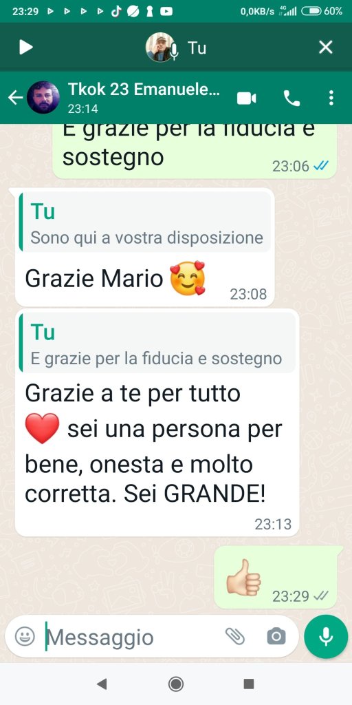 Per tutto questo devo solo Ringraziare lei Signor Mario.