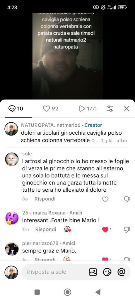 I artrosi al ginocchio io ho messo le foglie di verza le prime che stanno all esterno una sola lo battuta e lo messa sul ginocchio cn una garza tutta la notte tutte le sera ho alleviato il dolore